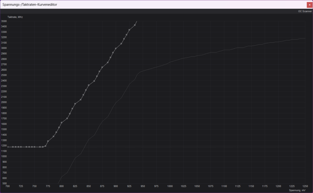 - Beispiel: Erhöht ihr die Frequenz bei 0,9V von 2,3 GHz auf theoretische 3,4 GHz, deckelt der Treiber bei 3,3 GHz (da max. +1000 MHz Offset möglich sind).